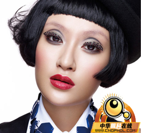 在眼睑部位手绘睫毛,极致华丽,开创彩妆新潮流。运用黑色眼影和薄刷在眼周绘出俏丽分明的睫毛,彩妆师高超的技法使绘出的睫毛呈现逼真的存在感和立体感,延伸的“假睫毛”使双眼呈现飞扬的美感,夸张而又华丽。