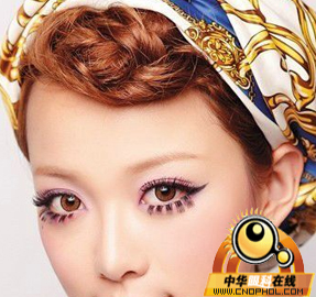 轮廓晕染眼影,整个轮廓晕染深色眼影,不勾勒眼线。