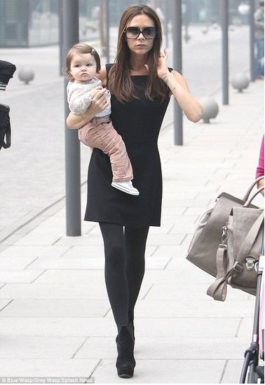 贝嫂携爱女空降北京 全框大墨镜更显气场