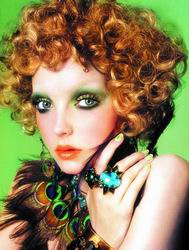 值得注意的是,使用绿色眼妆时,口红应选择同样独特的桃红色为最佳,过于鲜艳的梅红色或是太过灰黯的紫色,都将破坏可爱的妆容。 |