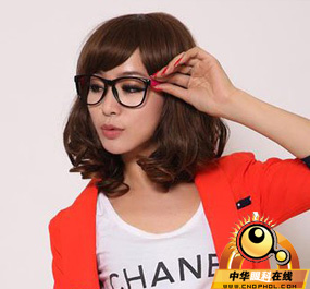 精致烫发的发型,短发梳一款柔和的梨花头对气质的衬托也透着高雅,斜刘海光洁柔和,自然俏丽的梳发大方时尚,气质方框镜让形象更高雅。