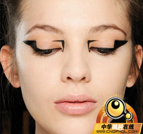 自然效果的技巧是在用眼线笔画好后再晕染一下。这里是否涂满关系到眼睛能不能变大。下眼皮线条比较直的人请画满正三角形的位置。 |