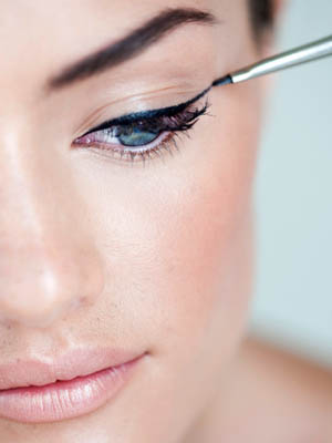 三、眼线膏 优点:颜色鲜明,线条粗细好掌握,配合眼线刷使用容易上手。最适合做晕染的眼线产品,稍作改变就会变化无穷。持久性强,不容易花妆。 缺点:质地较浓稠,容易凝固起块。使用时,一定要配合专业眼线刷使用,既可晕染开来,也能画出精准的线条,不过技巧不好掌握。 使用秘诀:要选择平薄、有直毛或稍有斜角的眼线刷。最后在画之前轻弹刷具,可预防有粉末颗粒掉到眼睛里。另一个诀窍是,在化妆前先稍稍蘸湿刷毛,可以确保眼线膏流畅,还能让眼线妆效更持久。