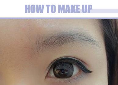 步骤二:浓郁的黑色眼线液沿着睫毛的根部画出一条眼线,眼尾处下垂并且拉长约5mm,下眼线大概画眼尾三分之一的地方就可以了。