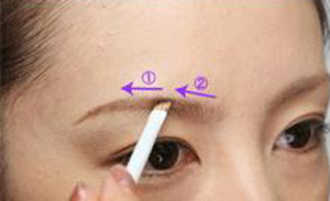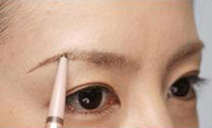 第二步:然后就可以开始画眉了,从眉尾向眉头的方向开始画,用眉笔描画眉尾。如果眉毛没有长到的地方,用眉笔补足。