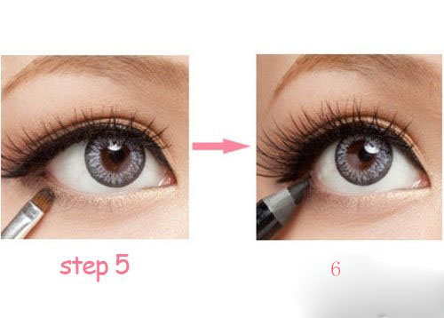 5.边缘涂抹咖啡色眼影来放大眼睛。下睫毛当然也要靠眼影来加重效果,方法是在下眼部边缘稍稍涂抹咖啡色眼影来放大眼睛,咖啡色眼影可是人手必备的“大眼法宝”呢!