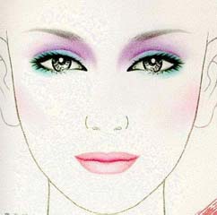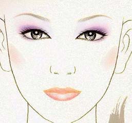Tips:选择强调色时,要考虑自己的服饰和唇色与之相协调。比如,蓝色、褐色和灰色,往往给人以漂亮和时髦的感觉;紫色显得温和、幽雅;桃红色能增添妩媚动人的风姿;紫罗兰色给人以成熟的魅力;绿色使人有爽快的感觉;金属色彩一般是在舞台上使用的。