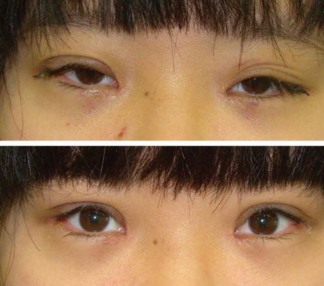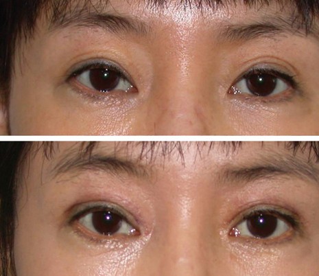 4、在较严重的案例中,用襦式缝合的方法缝合皮肤和眼轮匝肌,在容易形成三睑畸形的部位形成卷筒状,以避免筋膜与眼轮匝肌的粘连。 |