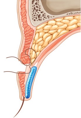 2、对于前睑板组织总量不足的爱美者;,可拉下隔膜和眼眶脂肪,固定睑板上。隔膜,包括眼眶脂肪可避免筋膜和眼轮匝肌粘连,从而避免三睑畸形;