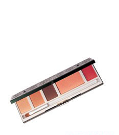 不擅搭配脸部彩妆的女生有福了!将同色系的三色眼影、一色腮红、一色唇蜜与一支唇刷放在一起,一盘在手,绝美好气色立刻绽放。