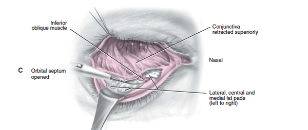 还有“内路眼袋切除术”,也就是“经结膜入路” 切除眼袋,切口位于结膜内,做一小切口,取出膨出的脂肪,这种方法表面没有切口,适用于单纯眶隔脂肪膨出,下睑皮肤弹性较好的人,通常是小于40岁的求美者。