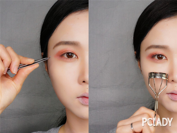 眼影结束之后,用到单束的假睫毛,单束的假睫毛黏贴的时候会麻烦一些。