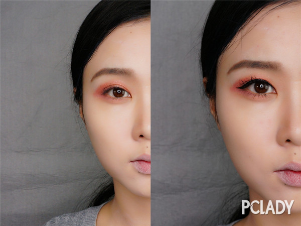 涂上眼线和睫毛膏之后,整个眼部就有放大。