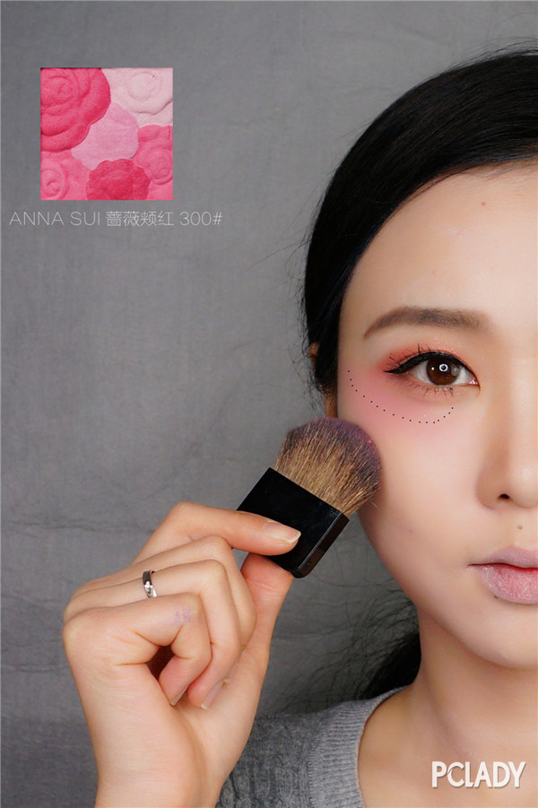 (图上有标示)腮红的画法也比较特别,画在眼部下面的位置。