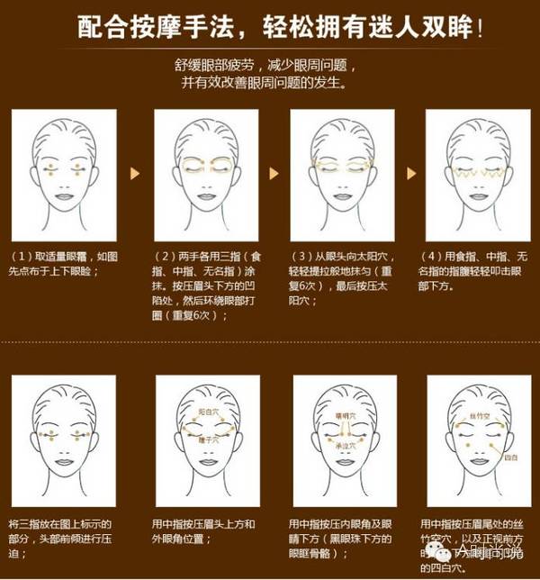1.不要直接用眼霜,经常眼部疲劳,眼部不易吸收,直接用眼霜容易增加眼部的负担