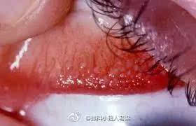 眼磨和异物感多由干眼症和巨乳头结膜炎引起。眨眼时,隐形眼镜的机械性摩擦不断刺激上睑结膜,生长出又扁又硬的结膜乳头(图2)。干眼症由于泪膜功能差,挥发快,很快就破裂,女生较多。我们眼睛分泌的泪液在角膜表面形成了泪膜,通过眨眼来涂抹,保持角膜湿润、提供氧气。由于隐形眼镜阻挡了泪膜在角膜表面的正常覆盖,角膜处于缺水和缺氧状态,角膜内密集的神经就会不断提醒主人:“有东西在磨我”。