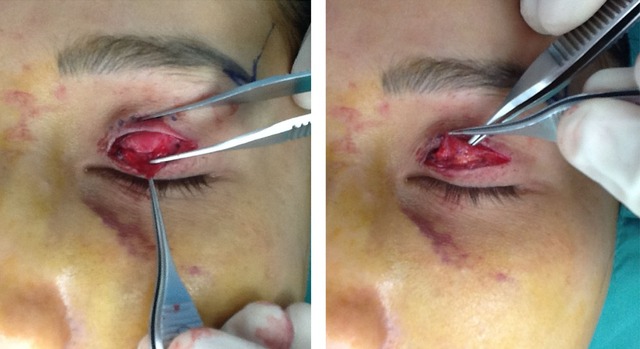 Step 3: 将消毒过的暗疮针有刺的那面,将脂肪粒白头挑开。然后用消毒过的暗疮针有环的一面轻轻压在挑开脂肪粒上,脂肪粒就出来了!