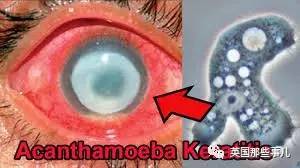 而棘阿米巴原虫一旦通过水源入侵到人的眼部,就会在隐形眼镜后面的眼角膜扎下根,迅速繁殖。