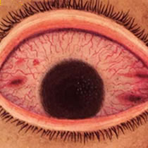 4.球结膜下出血:发病后2~3天内即见球结膜下有点状、片状出血,重者波及整个球结膜,7~14天后消失,尢以青年人多见。