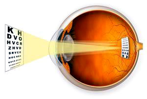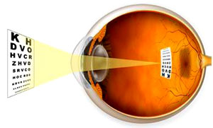 眼在不使用调节时,平行光线通过眼的屈光系统屈折后,成像在视网膜的后方,这种眼的屈光状态为远视眼(hyperopia)。