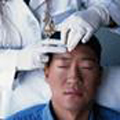 3.如无冲洗设备,也可把头部埋入清洁盆水中,把眼皮掰开。眼球来回转动洗涤。