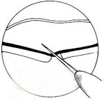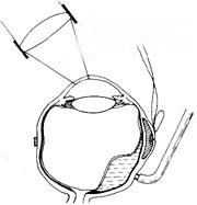 2.巩膜上作一3mm长垂直向切口,直至暴露脉络膜。