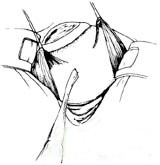 切口两端可预置一对褥式缝线,待放液后关闭切口用。