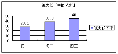 调查小组对本校1400多名同学进行调查,表一所示为各年级视力低下情况,调查结果表明,随着年级的升高和年龄的增长,视力低下率也逐渐上升,中学生的视力下降情况确实相当严重,并且成继续发展的趋势。