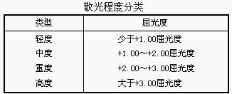另外,根据散光的程度可以把散光眼分4种类型(表)。