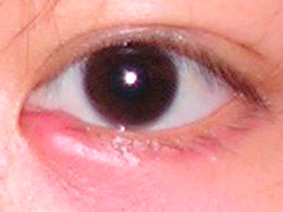 麦粒肿为细菌(常见为葡萄球菌)感染引起睑腺体的急性炎症,根据受累腺组织的不同部位分为外麦粒肿和内麦粒肿。外麦粒肿是睫毛毛囊所属的皮脂腺(Zeiss腺)受感染,俗称“偷针眼”。初起时痒感逐渐加剧,眼睑水肿、充血,有胀痛和压痛,在近睑缘处可触到硬结。发生在外眦部者疼痛特别显著,外侧球结膜水肿,耳前淋巴结肿大并有压痛。数日后硬结逐渐软化,在睫毛根部有黄色脓头,积脓一经穿破皮肤,向外排出,红肿迅速消退,疼痛亦随之减轻。