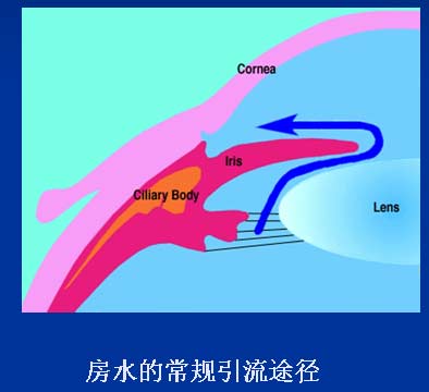 房水主要作用是维持眼压、形成内环境和作为屈光介质,在眼睛的睫状体突生成,常规引流途径为:睫状突→后房→瞳孔→前房→前房角→小梁网→schlemm管→巩膜静脉。