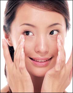 用大拇指指腹按摩上眼皮,用食指指腹按摩下眼皮。从内眼角按摩到外眼角,像一点点在描画眼睛轮廓的骨头一样地按摩。1个地方按5秒,5秒到了后,指尖一下子离开皮肤。