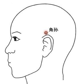 3.角孙:该穴位于头部,折耳郭向前,当耳尖直上入发际处。