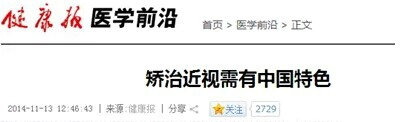 11月13日的《健康报》刊登了瞿佳教授的署名文章《矫治近视需有中国特色》,引发广泛的关注。