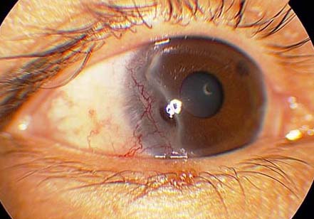 ②全板层角膜移植适用于溃疡进展至后期,侵蚀面很广,中央部角膜残剩“小岛”,周围已被溃疡侵蚀而松软,或溃疡区已占据角膜圆周3/4区域者。全板层角膜移植仍应带部分巩膜。病变角膜及结膜(包括受累的上巩膜)应彻底清除。