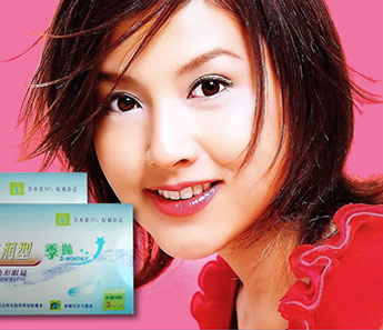 隐形眼镜对近视散光的矫治。无论近视或远视,都是球面性屈光不正,其屈光系统表面各径线的曲率是相同的。如果眼球在不同径线上的屈光状态不一致,尤其是角膜表面曲率半径不一致,光线穿过角膜的不同径线后,就不可能相聚于同一焦点。这种屈光不正状态称为散光。散光又分为规则性散光(包括顺规则性散光与逆规则性散光、对称性散光与非对称性散光、斜散光)不规则性散光两种。造成不规则散光的常见原因是角膜炎症使角膜失去平滑。此外,锥状角膜或角膜散光合并晶状体倾斜,亦往往伴有高度不规则散光。这种散光,光线经过角膜后可被屈折得杂乱无章,无法用普通眼镜加以矫正,但配戴隐形眼镜可以提高视力。隐形眼镜对散光的矫正主要是通过泪液屈光调节作用。泪液充满于隐形眼镜与角膜之间,当由于角膜曲率改变而发生散光时,泪液使其发生改变,从而达到矫正散光的作用。由于角膜与泪液的屈光率之差,造成的10%左右的带入性散光,这一带入性散光一般可被角膜后面存在的相反散光度所消除。