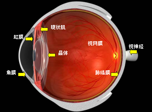 眼内容物包括房水、晶体和玻璃体。三者均透明,与角膜一起共称为屈光介质。