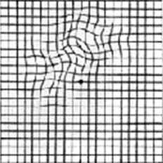 如果检查时发现网格变的模糊,变形或颜色异常,您需要去医院眼科进行进一步检查。(如下图)