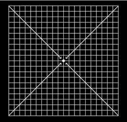 检查时按以下步骤: 1.如果有眼镜,请戴上。 2.盖上一只眼,注视方格表的中央点。 3.检查中一直注视该点。 4.所有的线条应该是直的,方格应该是同样大小的。 5.两眼分开检查。