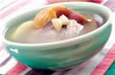 [原料]: 菊花6克,胡萝卜100克,葱花5克,食盐适量,味精2克,清汤适量,香油5克。