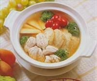 制法:将菊花洗净后放入锅,加适量水,煎煮至沸,去菊花备用。紫茄子与菊花汤同放入碗中,隔水蒸熟,放入适量麻油、精盐、醋,拌匀即成。
