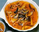 材 料: 淡菜30克,香菇15克,木耳15克。 功 效: 滋润凉血,补益肝肾。高脂血症,肥胖,高血压病,属阴虚阳亢者。症见头晕耳鸣,眼干目涩,心悸失眠,便秘,口渴。 做 法: (1)香菇(去菌茎)浸软洗净,木耳浸开洗净,去蒂,淡菜浸软洗净。 (2)把香菇、淡菜加入锅内,加清水适量,武火煮沸后,文火煮半小时,再放入木耳,煮沸10分钟,调味供用。 说 明 : 本汤滋肾平肝,降脂减肥降压,汤中香菇又叫香蕈、冬菇,性味甘平,功能健脾益胃,含有蛋白质,脂肪、多种氨基酸,多种维生素。木耳又叫云耳,性味甘平,功能凉血润燥,含有蛋白质,糖,胡萝卜素,维生素(B1、B2),麦用甾醇,卵磷脂,脑磷脂等。香菇、木耳自古以来被人们为素食佳品,据研究证明,两者均可降低血清和肝脏胆固醇含量,防止动脉壁脂质沉积和动脉粥样硬化斑块的形成,其中个别成分的降胆固醇作用比西药安妥明要强10倍。淡菜为厚壳胎贝的肉,又称珠菜、东海夫人,性味甘咸微温,功能补肝肾,益精血、属低脂海鲜食品。合而为汤,滋肾平肝,降脂降压,明目美眼,减肥健美。本汤亦可用于护肤美容消斑。