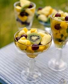 玉米水果沙拉 玉米含有蛋白质、黄体素、玉米黄质、镁、钾、锌等,特别是黄体素、玉米黄质,可以预防老年黄斑性病变的产生。