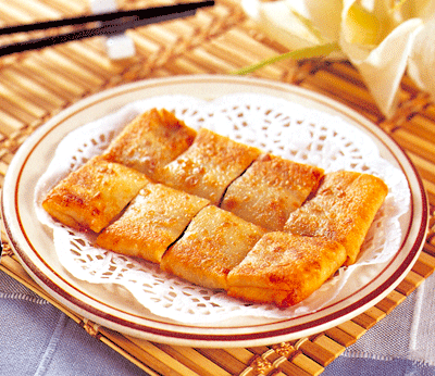 菜 名: 豆沙锅饼 主 料: 面粉1.5杯、鸡蛋1只(打匀)、豆沙馅料230克、清水约1.5杯 做 法: 1、置筛匀面粉于深兜内,加入蛋汁和清水,搅匀成浓度适中的粉浆,待用。 2、用平底锅将上项粉浆煎成锅饼数张,留用。 3、将每张锅饼包入适量豆沙馅料,做成扁条状豆沙锅饼,随即放入适量热油半煎炸至表面呈微黄取出,吸干油分,切件,上碟,供食。 功 效:明目补肝,顺气活血,清心利肺