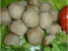 3、倒油500克在锅中烧至温热,起出1匙牛肉末做成一个牛肉丸,逐个放在锅中炸至微黄,捞起沥干油放在菜叶上即成。