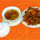 金莲花茶:金莲花以前一直作为观赏花,最近发现,用它来泡茶,可以起到清热解毒、养肝明目、提神健胃的作用,对治疗口腔炎、咽炎、扁桃体炎均有明显疗效。取3—5克金莲花用开水冲泡5分钟即可饮用,也可加入金盏花2—3朵一起冲泡。金莲花虽然好看,但泡茶喝味道偏苦,可适当加点冰糖调口味。