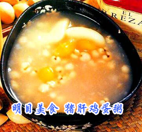 猪肝鸡蛋粥:猪肝50克,鸡蛋1个,粳米50克,盐、姜、味精少许。猪肝切细,与米同煮粥,熟时打入鸡蛋,加盐、姜、味精调味,稍煮即可。此粥补肝明目,可缓解因看电视而造成的视物不清。