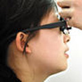 1、验光前首先要测量瞳距,找出相应的试镜架进行验光。