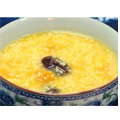 2、 小米淘洗干净,和胡萝卜片一起放入汤锅,添足水,水开之后拧小火,煮上约半个小时至熟,即可饮用。