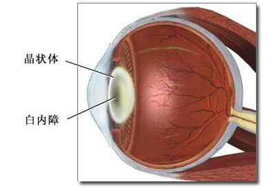 正常眼的晶状体是透明的。白内障是由于年龄的关系晶状体发生云雾样浑浊。